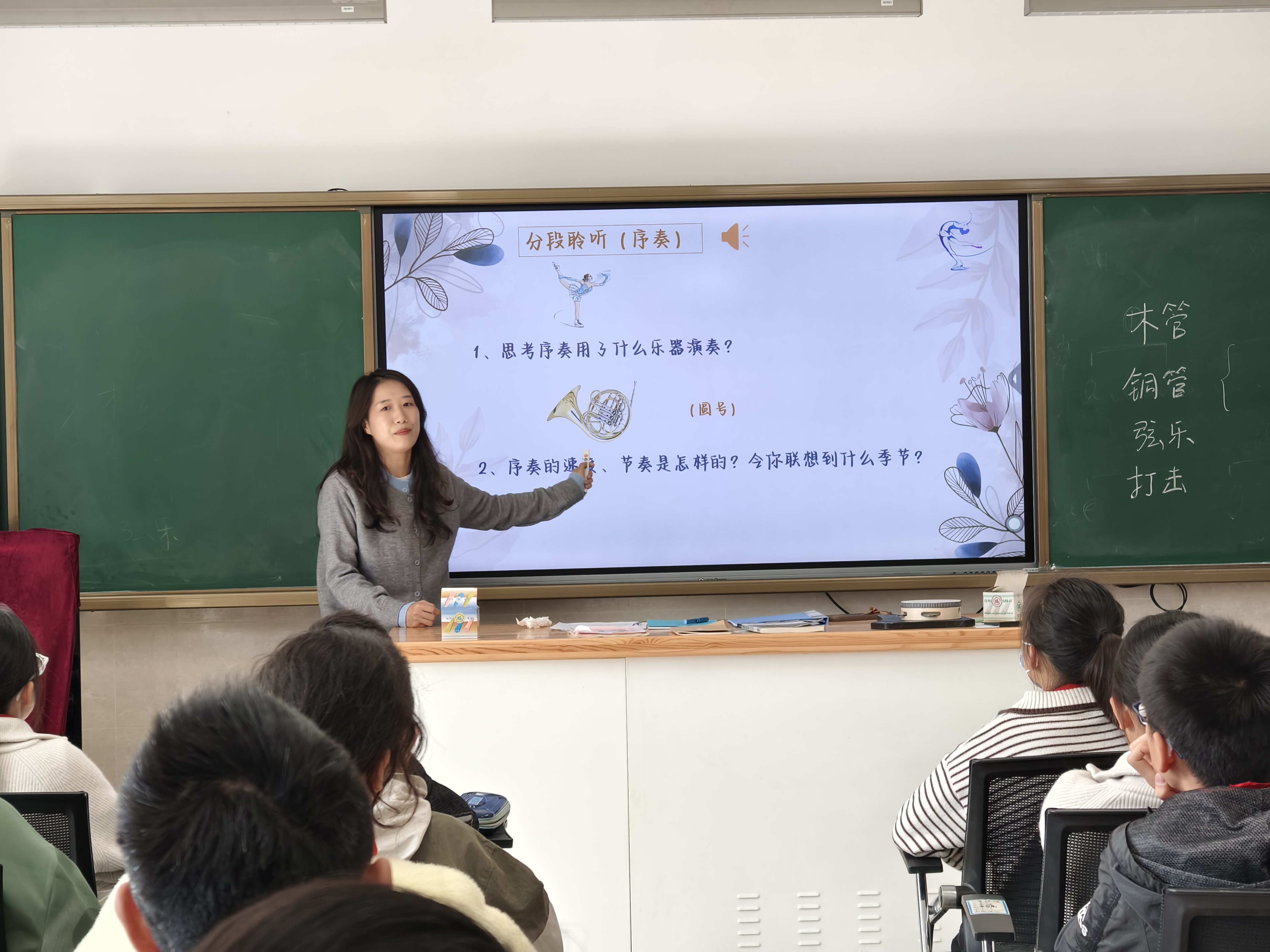 音体美心信组肖安琪老师开设校级公开课——《溜冰圆舞曲》 来源: 发布时间:2024-11-01 09:24:52 浏览次数: 次 【字体:小 大】 2024年10月25号,肖安琪老师在初一(8)班开设了一节《溜冰圆舞曲》公开课,本节课通过律动、编创、画旋律线等形式欣赏乐曲,以此来培养自身多元的艺术表现能力,拓宽情感表达途径,丰富学生的情感体验。学生在欣赏的过程中,去理解并体会乐曲所表达的情感,感受圆舞曲的音乐魅力,从而喜欢上这一体裁。 肖安琪 分享到: 【打印正文】