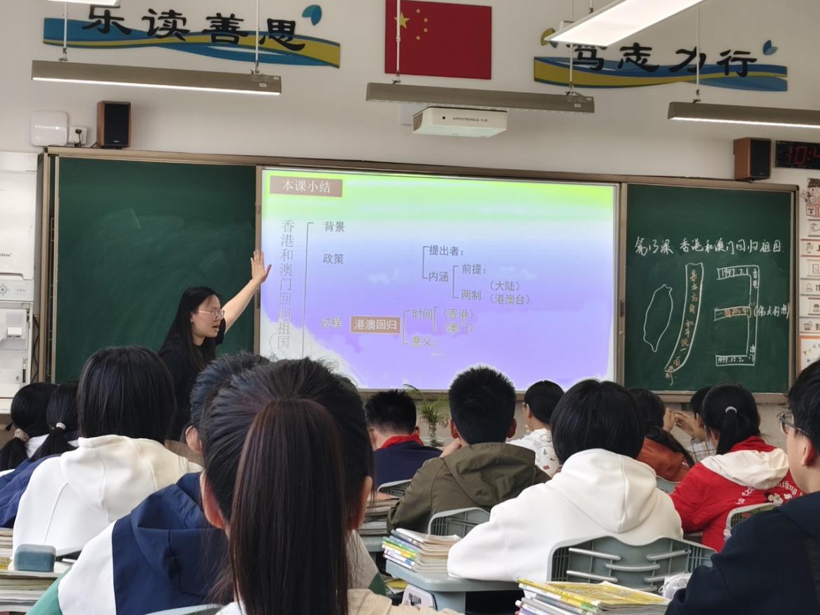 政史地组吴小港老师开设校级公开课 来源: 发布时间:2025-05-07 15:39:30 浏览次数: 次 【字体:小 大】 政史地组吴小港老师开设校级公开课5月7日上午第三节课,政史地组吴小港老师在八年级(2)班开设了一节题为《香港和澳门回归祖国》的校级公开课,政史地组全体老师参加了现场观摩。课后,政史地组全体教师进行了精彩点评,一致认为吴小港老师的课堂授课思路清晰,环节流畅,环环相扣,板书设计精巧,并通过音乐激发了学生的爱国情怀。 分享到: 【打印正文】