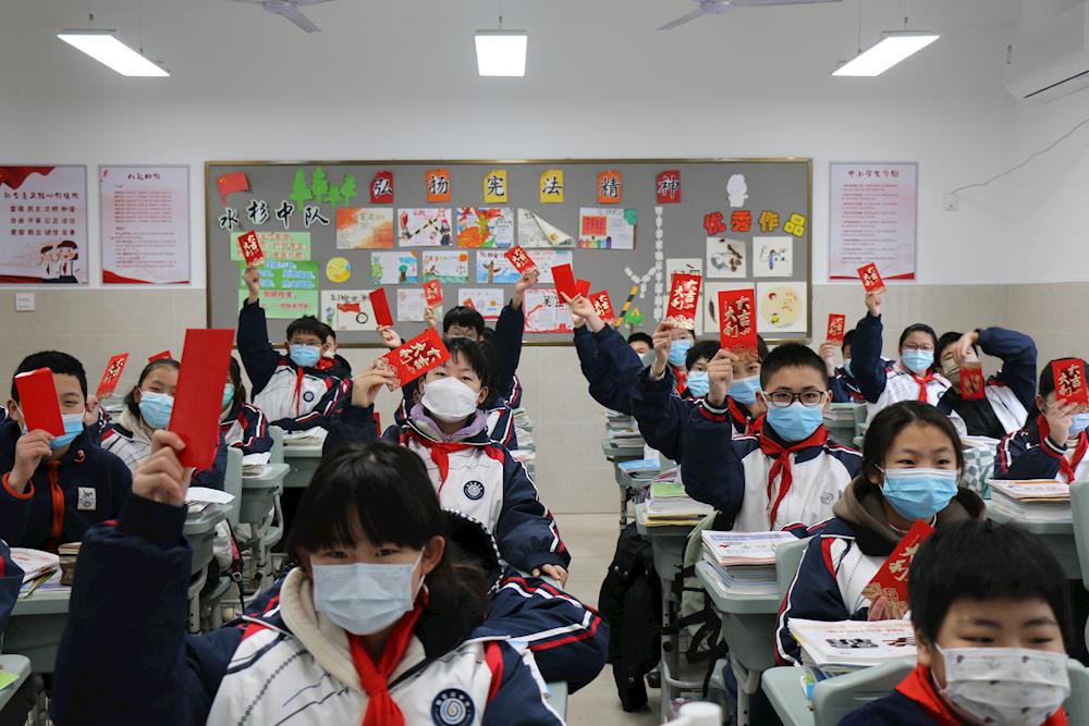 当墅中学子们满怀憧憬,带着校长祝福,踏入阔别已久的校园和班级时,惊喜地发现老师的红包里也装满了对学生们的寄语与期待。学子们也不负所望,诉说着新学期的目标和梦想。图13-18