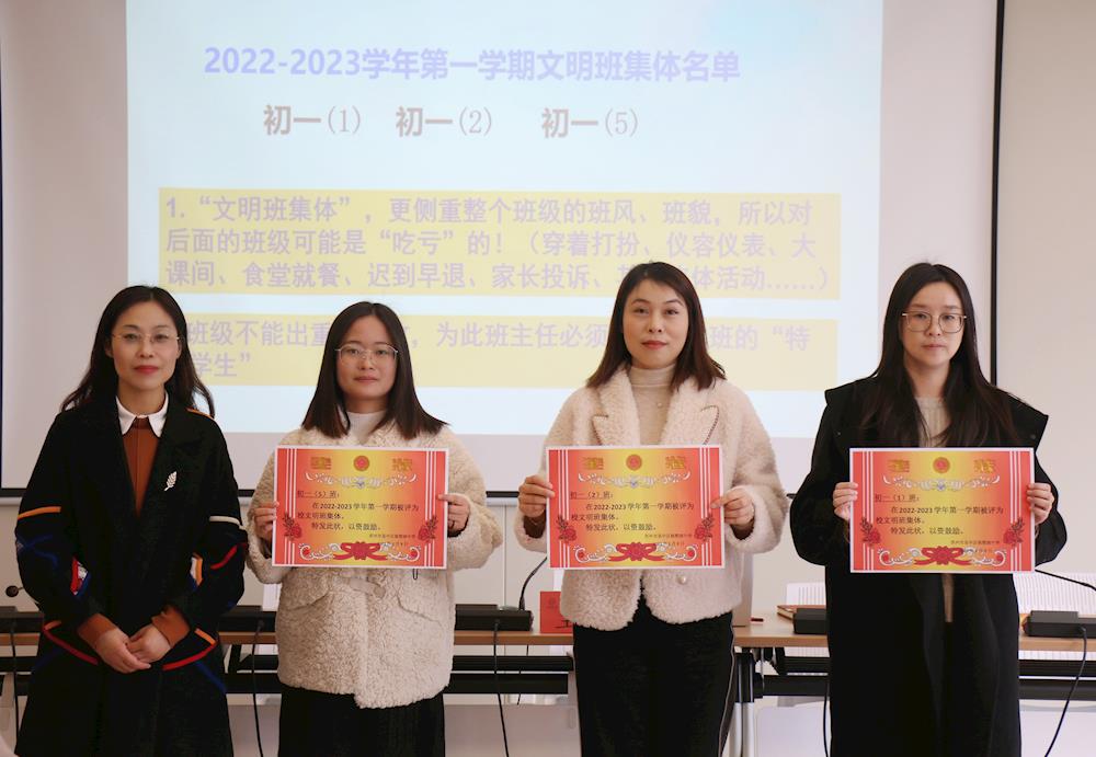 王主任回顾了过去班主任工作的点点滴滴,充分肯定了上学期班主任的德育工作,特别是在疫情期间的辛勤付出,积极配合并高效完成了学校各部门工作。