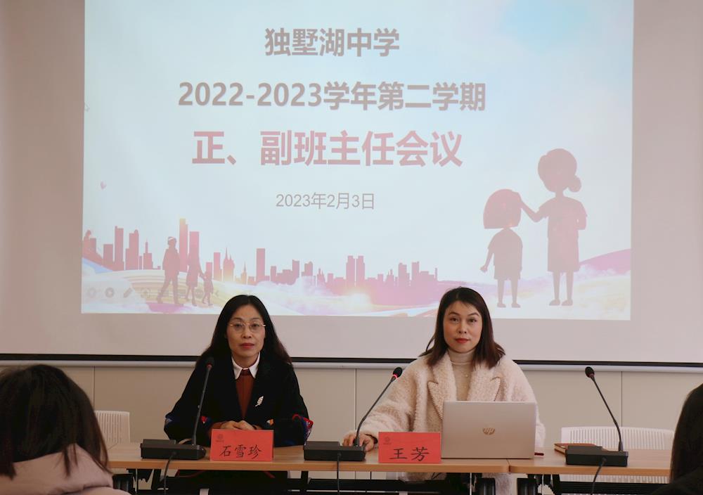 草木蔓发,春山可望。为全面布置开学初的各项工作,促进学校德育工作高效开展,打造高素质班主任队伍,确保新学期教育教学工作的有序开展,2023年2月3日下午,独墅湖中学召开了2022-2023学年第二学期正副班主任会议,校长石雪珍、德育处副主任王芳老师及全体正副班主任参加了会议。