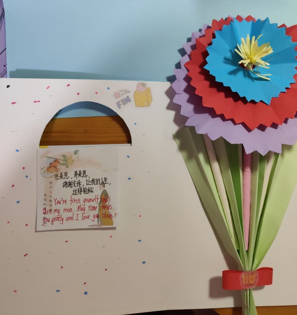 学生们心怀感恩,自己动手做贺卡和画海报来传递自己的真情。贺卡上,他们先细心的绘制精美的图案,再配上真诚的祝福语。贺卡纸薄,却承载着对父母和老师的爱意。海报上,同学们大胆创意,以感恩大自然为主题,号召大家保护地球,让天空更晴朗,世界更美丽。