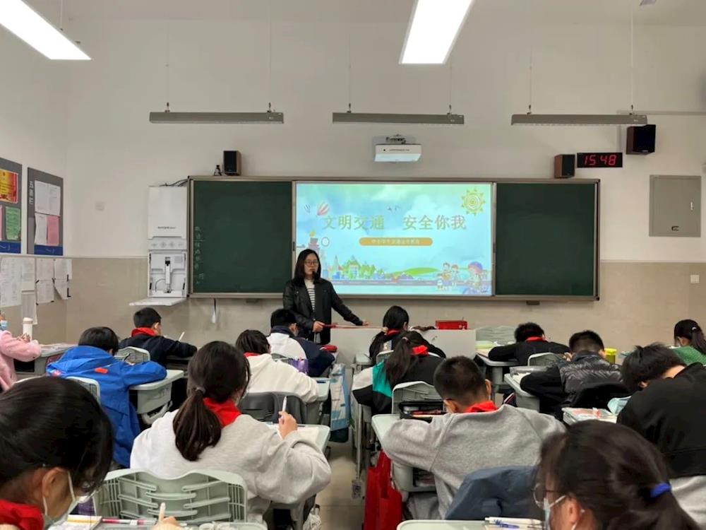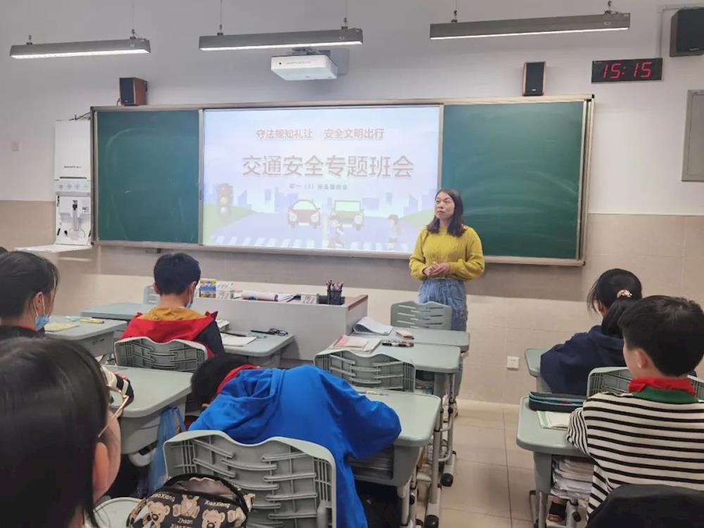 学校通过发放告家长书、国旗下主题演讲、班级主题班会、学校电子屏宣传等多种途径,引导学生学习交通安全知识、学认交通安全标志、学唱交通安全歌,强化学生遵守交通规则的意识。