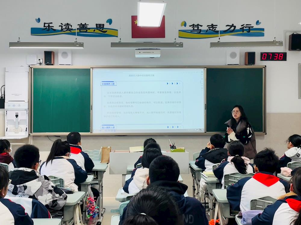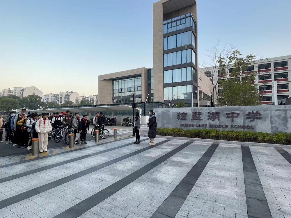 独墅湖中学层层分解安全工作责任,落实到人。在校门口等人员流动相对密集的区域,值班领导、教师及家长志愿者的护导工作有效地确保学生有序通行,安全上下学。学校采取分班级、分出口、分路线的通行方式避免了学生集体上下楼梯产生拥堵情况。同时,我校在所有楼梯通道等区域均安装语音指引设备,提醒学生放慢脚步,避免踩踏。