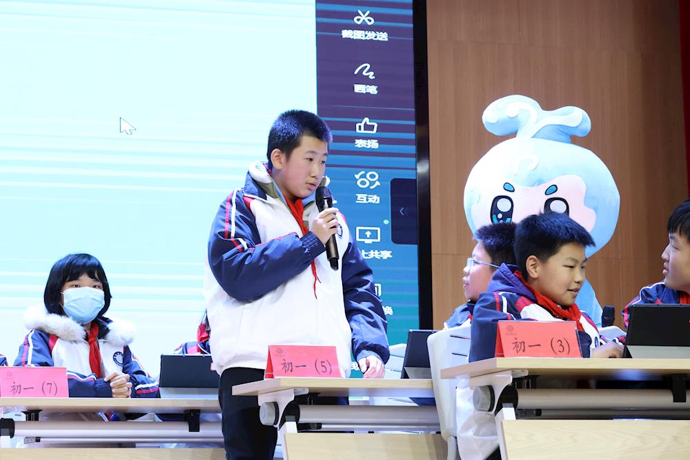 知识竞赛共追逐赛、争夺赛和争霸赛三轮,设置了“各国首都我知道”、“各国建筑我知道”、“各国服饰我知道”等有趣的环节,从视觉、听觉、味觉多方面,沉浸式带领同学们探索世界文化。穿插在紧张刺激的比赛中的表演也是精彩纷呈,英语组的老师们带领全体学生一起来表演《拍手歌》,还有初二同学代表带来的趣配音《彼得潘》!