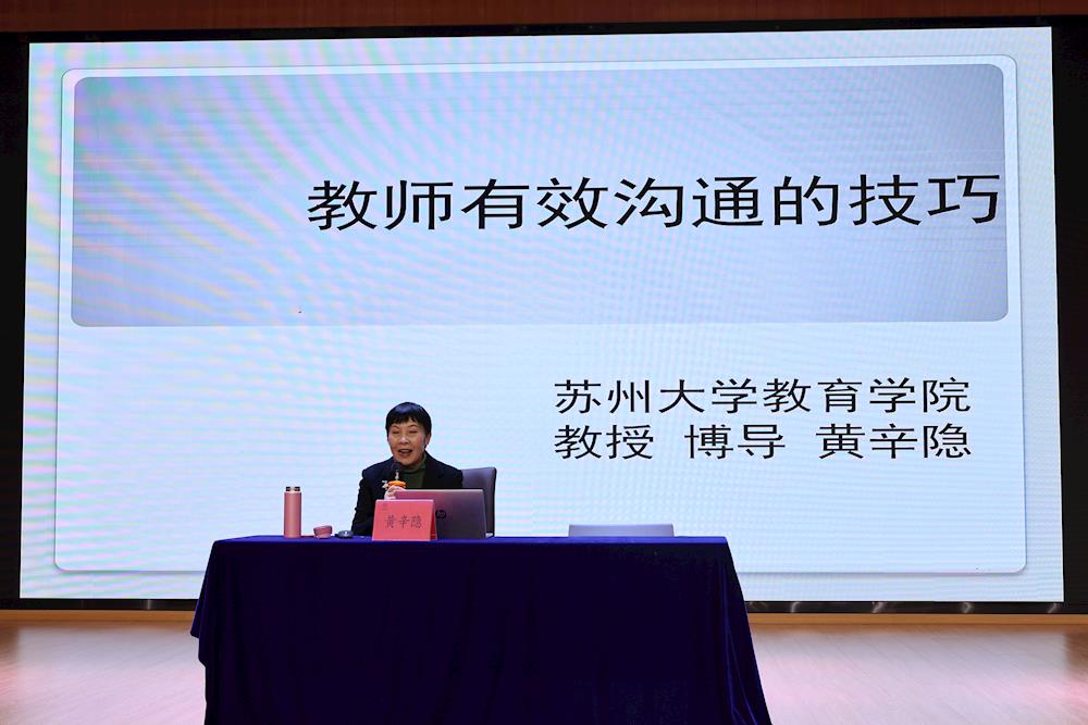 提高教师整体素养的首要任务是夯实其德育理论修养。为帮助教师们更好地了解学生、关心学生、教育学生,2023年12月6日下午,独墅湖中学开展了第10期“六木伴长”班主任研习活动。我校有幸邀请到了苏州大学教育学院心理学博士生导师黄辛隐教授,为教师作师生有效沟通技巧的主题讲座。