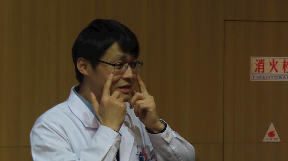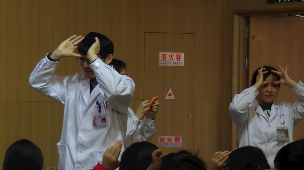 此外尹山湖医院中医科仇励治医生为同学们仔细讲解了眼保健操的穴位、明确了动作要领。