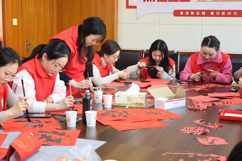 活动现场,老师们铺开红卷,蘸好笔墨,笔锋婉转,与书法爱好者互动。一幅幅寓意吉祥的春联,一张张喜气洋洋的“福”字和窗花,在巧手下陆续诞生。