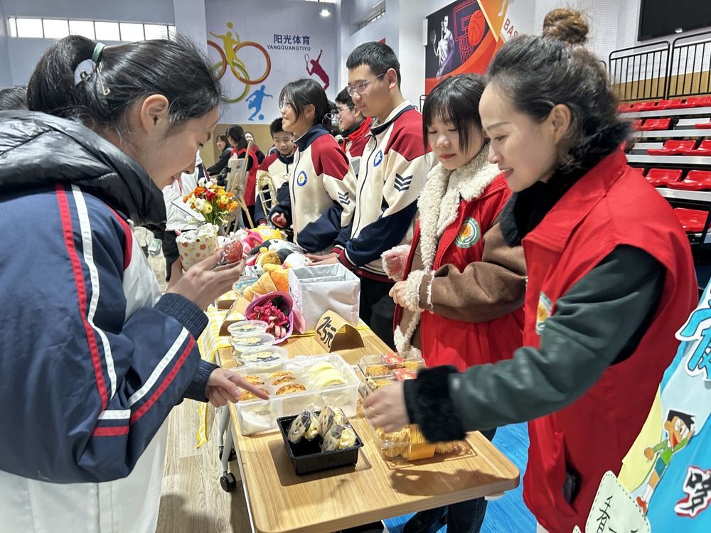 各班级义卖活动规范有序,认真筹备,每个班级的“商铺”都别出心裁地展示出自己的特色,摆上精心制作的海报和宣传板,展现学子们的巧妙创意。各个摊位上商品琳琅满目,等待着顾客的到来。