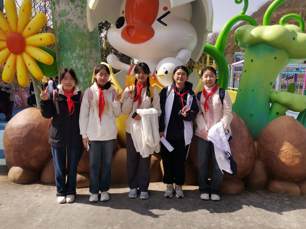 伴着和煦春风,大家抵达了目的地。在景区门口同学们拍下青春阳光的“全家福”,跟随导游的引导,有序进入乐园,以小组为单位进行游戏探索活动。