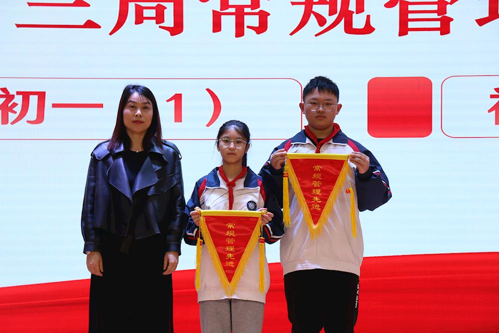 表彰第十三周常规管理先进班级:初一(1)班 初一(2)班