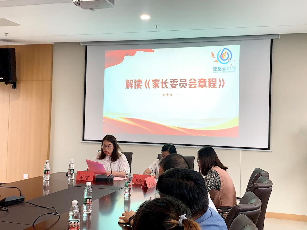 会议伊始,德育处王芳副主任宣读了初一年级家委会名单,并邀请12位家委会成员做自我介绍。简单的几句话,拉近了每位独墅湖家人的距离。