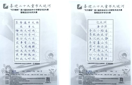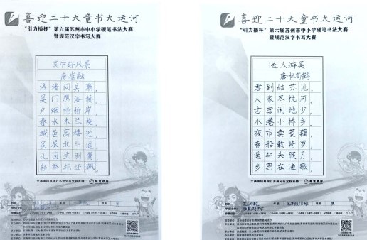 中华文化源远流长,汉字作为传承中华文化的文字载体,具有增强中华民族文化凝聚力和认同感的深远意义。我校组织25名学生参加“引力播杯”第六届苏州市中小学硬笔书法大赛暨规范汉字书法大赛的初赛。他们聚精会神,作品运笔熟练、提按分明。每一个工整的汉字都蕴含着学生对中国汉字的传承。初赛现场,参赛学生坐姿端正,耐心、细心的斟酌每一个汉字的书写。练好硬笔书法,弘扬民族精神。独墅湖中学将继续把汉字书写作为长期培养目标,使每一位学生都养成良好的学习习惯,坚定学生的文化自信。