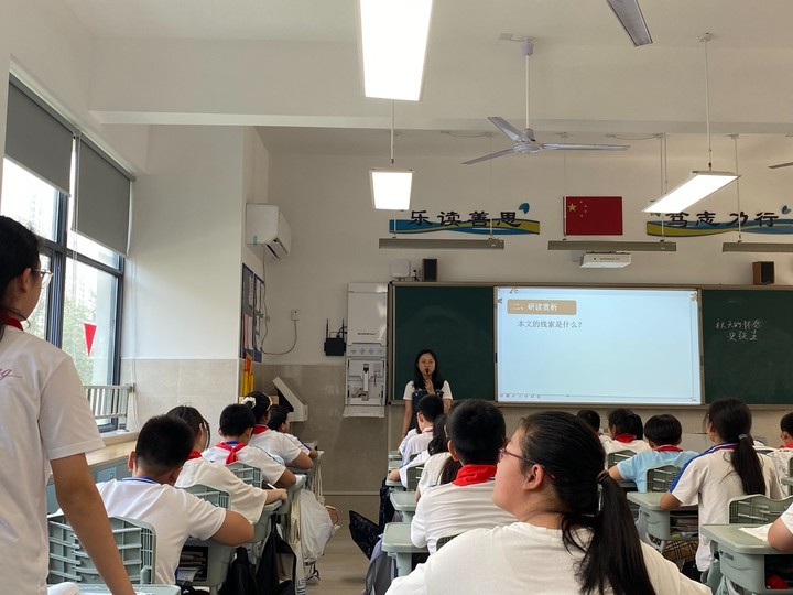 2023年9月18日,夏忆羽老师开设公开课《秋天的怀念》。整堂课学生发言踊跃,讨论热烈。在教学中,夏忆羽老师先以作者史铁生的人生简介为导入,通过对文章线索“看花”及三次看花经过的梳理,帮助学生理清文章脉络,其间穿插对作者及其母亲的人物形象分析,引导学生感受母爱的细腻无私与作者内心深处对母亲的怀念和愧疚之情。