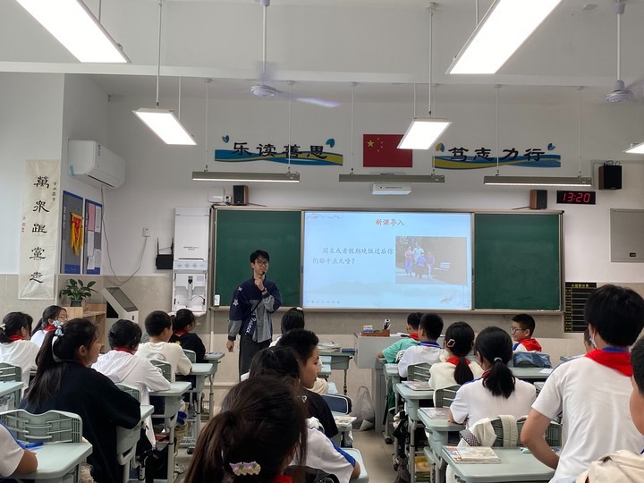 2023年9月25日星期一,韩伟健老师开展了公开课《散步》。从生活场景入手导入,让学生迅速进入情境,思索与家人相处的点滴。通过小组讨论的方式,合作解决梳理文章脉络,及概括人物形象特点两大问题,整体把握文意。再通过学生展示朗诵的方式,抓关键词句,分析人物心理。最后展示背景链接,教师示范朗诵唤起学生的心中亲情的点滴,使学生体会亲情的温暖,传承“孝”文化。