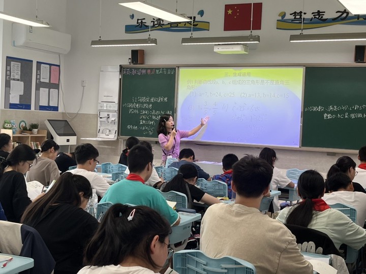 数学组钱正雅老师开设校级公开课——《勾股定理的逆定理》 来源: 发布时间:2023-10-07 10:09:12 浏览次数: 次 【字体:小 大】 9月26日下午,钱正雅老师在初二(5)班开设一节题为《勾股定理的逆定理》的校级汇报课,校领导及数学组全体老师参加了现场观摩。 课后,数学组以及校领导进行了评课活动,认为钱正雅老师的授课从学生自主探究开始,增强了学生的动手操作能力,内容讲解逻辑通畅,条理清晰,在课堂上及时进行知识的练习与巩固。 分享到: 【打印正文】