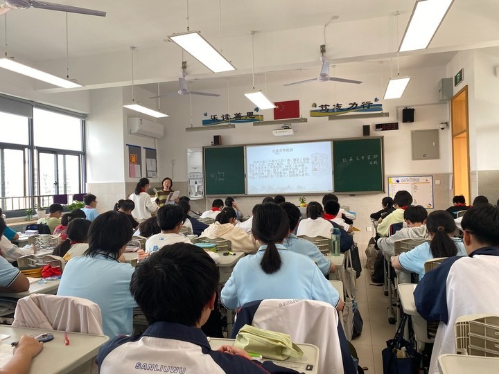 语文组尚芹芹老师开设校级公开课《记承天寺夜游》 来源: 发布时间:2023-10-12 11:03:37 浏览次数: 次 【字体:小 大】 10月9日,尚芹芹老师开设校级公开课《记承天寺夜游》。该堂课先以“名人小百科——苏轼”视频激趣导入。然后通过朗读引导学生走入文本,通过绘制人物心路曲线图把握文章大意。随后紧扣“乐”与“闲”,通过品析文中的景物描写和议论、抒情语句,引导学生深入文本情境,体悟苏轼随缘自适的旷达情怀。最后通过苏轼同时期作品的拓展阅读以及阅读书目推荐,引导学生从课内走到课外,拓宽阅读视野。 分享到: 【打印正文】