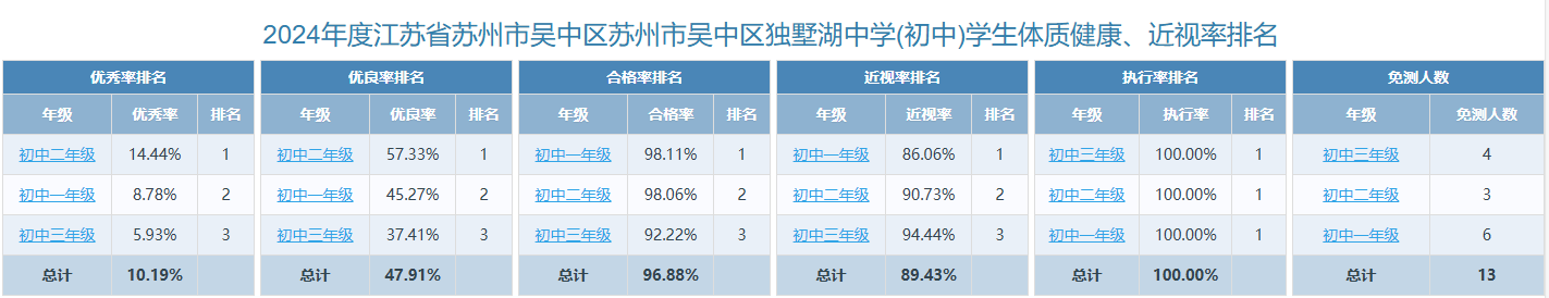 2024年度江苏省苏州市吴中区独墅湖中学初一、初二、初三年级学生体质健康排名公示