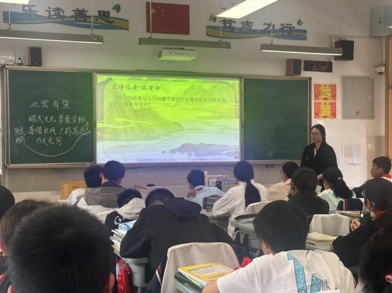 语文组沈钰老师开设的公开课《北冥有鱼》 来源: 发布时间:2025-05-26 16:01:54 浏览次数: 次 【字体:小 大】 沈钰老师开设的公开课《北冥有鱼》,课堂层层深入,由表及里,巧用古汉字和古诗文,借助ai技术,带领学生感受鲲鹏磅礴的形象,体会庄子自由浪漫的思想境界。 分享到: 【打印正文】