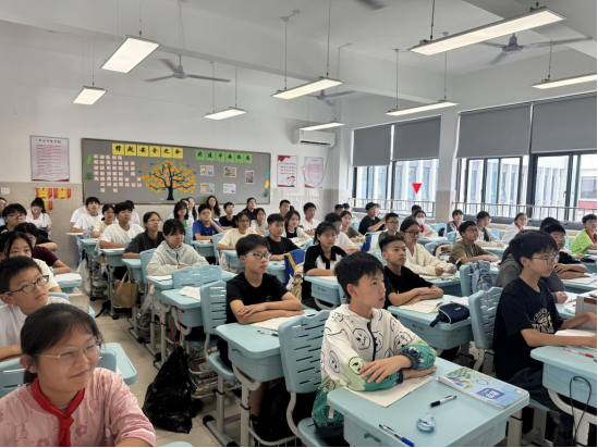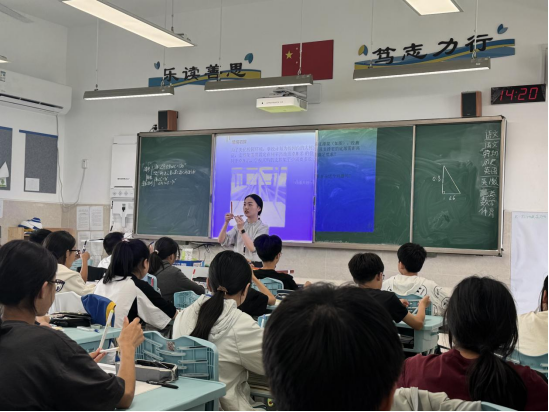 在初一二班的公开课上,袁明珠老师以"校园中树木的支撑架"为引,带领学生通过毕达哥拉斯的地砖中探索勾股定理。袁老师巧妙搭建思维阶梯:先以方格纸实验发现规律,再引导学生用代数语言推导a²+b²=c²的奥秘。当学生用拼图游戏自主验证定理时,数学不再是公式记忆,而成为可触摸的思维盛宴。这种从直观感受到逻辑推演的深度学习,生活实例与古老定理的碰撞让抽象知识瞬间鲜活!