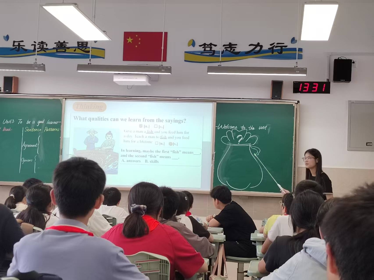 钱老师的课堂教学目标明确,定位恰当且充分体现在各个教学环节中,以“探索学习的奥秘”为主线,带领学生初步探讨如何成为一个好的学习者。钱老师依照教学主线,设置多样化的活动,引发学生自由探讨,步步铺垫,由传统谚语到角色对话,再到思维延伸,最后回归到单元主旨句进行强调与升华,帮助学习初步激发对于学习的兴趣与热爱。授课过程中问题的设置由浅入深,充分考虑到各个层次学生的需求。本堂课通过层层递进的任务型教学,充分培养了学生的自学能力、探究能力、合作能力和解决问题的能力。