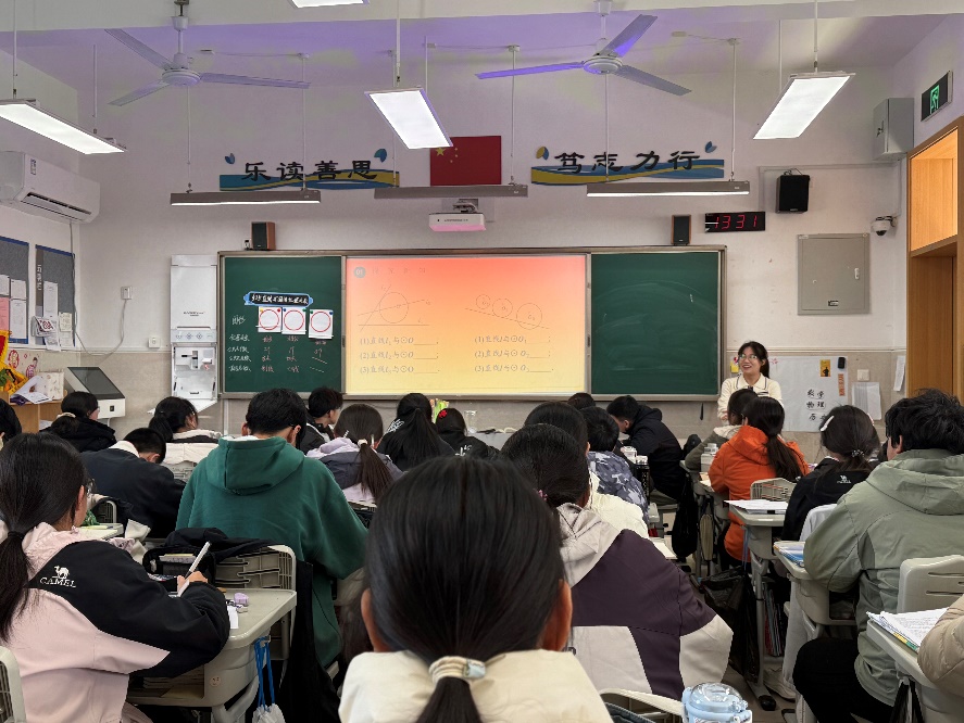 2025年11月25日下午第一节课,数学组韩晚辉老师在九年级(5)班开设一节题为《直线与圆的位置关系》的校级汇报课,校领导及数学组全体老师参加了现场观摩。