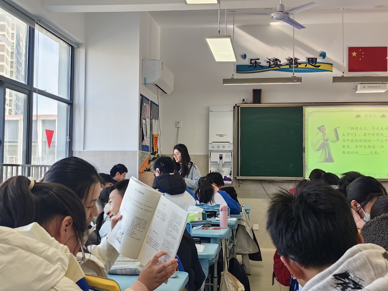 语文组熊鑫老师开设校级公开课——《雁门太守行》 来源: 发布时间:2025-12-22 17:13:01 浏览次数: 次 【字体:小 大】 2025年12月15日,熊鑫老师以《雁门太守行》为题,引领学生穿越时空,见证了“诗鬼”李贺天才般的创作。课堂上,通过创设“担任韩愈书童”情境激发学生兴趣,以任务驱动形式引导学生反复诵读、自主设疑与小组合作探究。学生们不仅深切体会了诗歌慷慨悲壮的艺术特色,还通过知人论世的方法,走进了李贺的内心世界,感受到了他虽未亲历战场却凭借大胆想象描绘战争场面的非凡才华。整堂课氛围活跃,学生参与度高,成效显著。 分享到: 【打印正文】