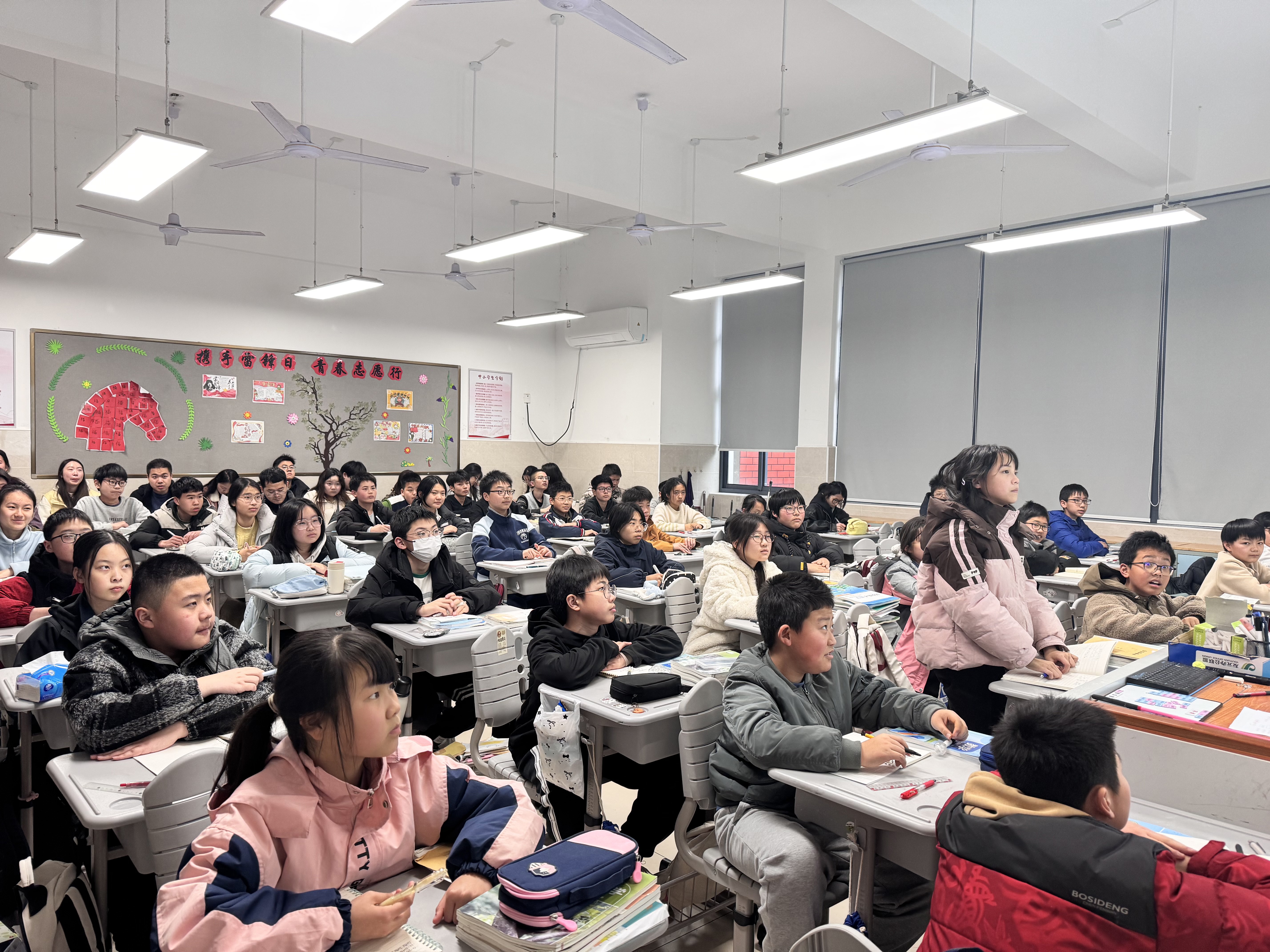 数学组华羽老师开设公开课《单项式乘单项式》 来源: 发布时间:2026-03-18 16:29:50 浏览次数: 次 【字体:小 大】 3月17日下午第二节课,数学组华羽老师在七年级(4)班开设一节题为《单项式乘单项式》的校级公开课,校领导及数学组全体老师参加了现场观摩。 课后,数学组进行了评课活动,并认为华羽老师的课堂以“拼拼图”的数学活动引入本节课的主题,既活跃了课堂的氛围,吸引了学生的学习兴趣,又有数学中数形结合思想的渗透。同时,华羽老师的课堂思路清晰,贯彻落实了数学核心素养的培养。 分享到: 【打印正文】