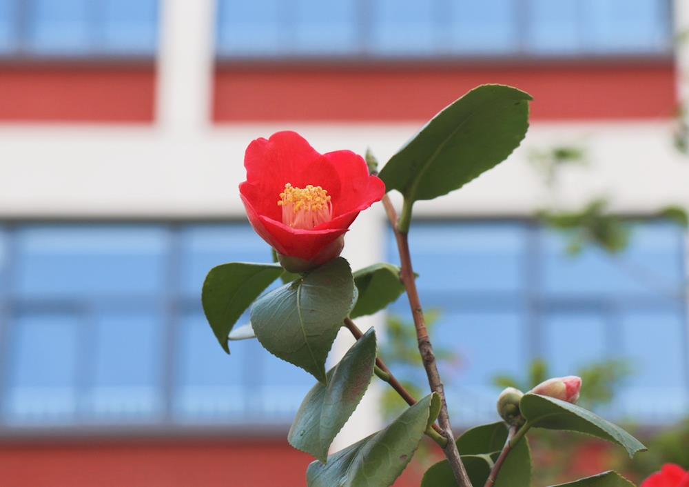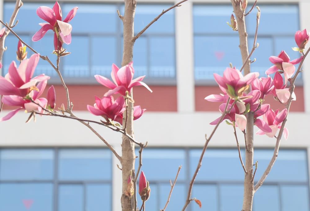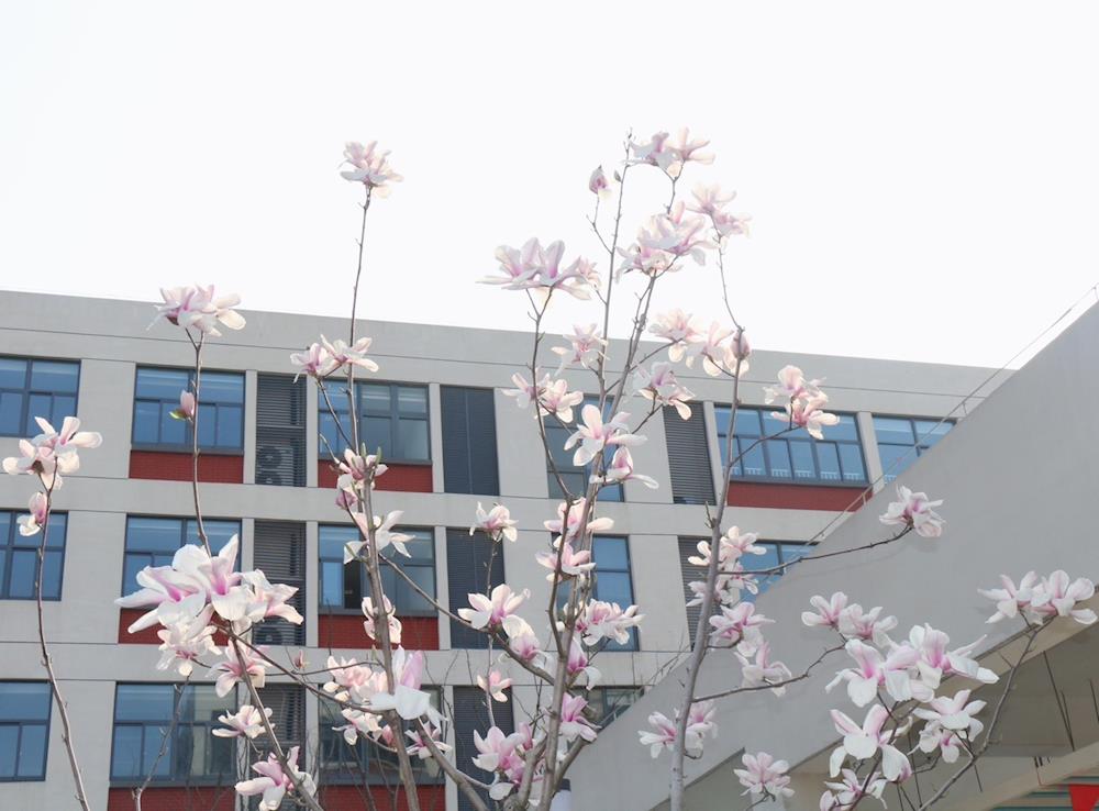 校园里花儿百花齐放,争奇斗艳,他们和我们一样,向阳而生,逐光前行。俏皮的海棠花甚是娇艳动人;山茶花披着红色的新衣盎然开放;那优雅的玉兰花,素装淡裹,亭亭玉立,看着她,人们会情不自禁地产生一种出淤泥而不染的高尚情怀;樱花雪月,落樱缤纷转眼间,樱花已布满了校园,那一树树的火树银花,在风的漫步之下,绽放出一个个天真可爱的笑脸。