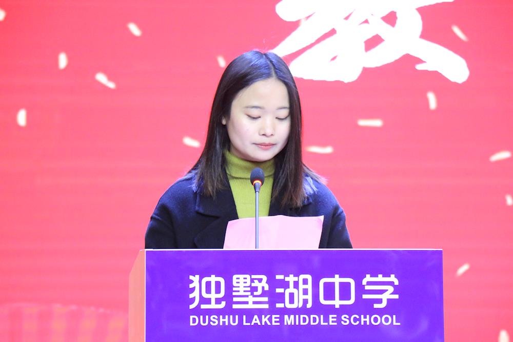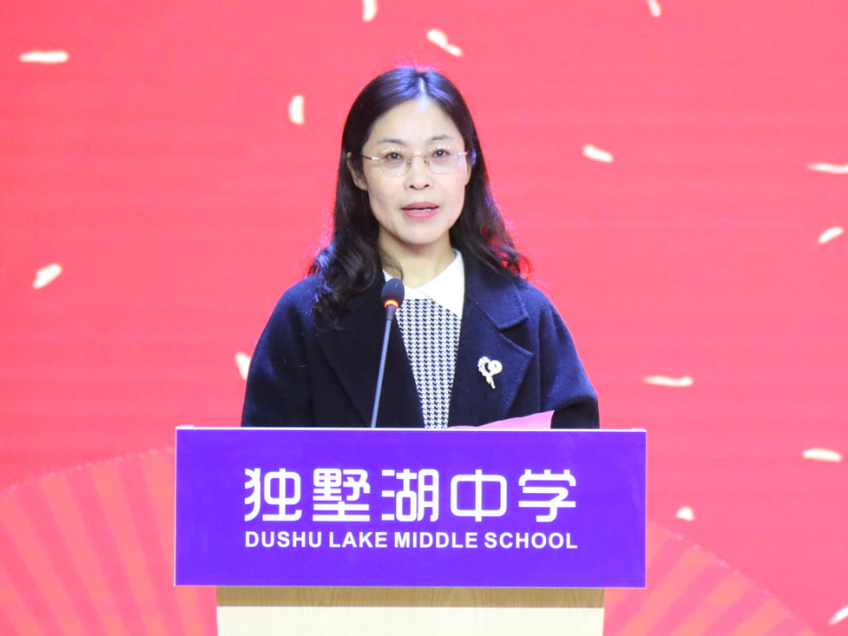 青年教师代表姜姣老师在发言中回顾了上一学期的成长与收获,并勉励学生在新学期带上理想和目标、自信和坚强以及勤奋和努力,全身心投入到学习中去。我们独墅湖全体教师将继续践行“同循其道 独树其人”的校训,以敬业务实的工作精神开拓进取,坚持不懈地用心育人。用童心理解学生,继续用爱心温暖学生,让每个生命都绽放光芒,共同开创属于独墅人的辉煌!