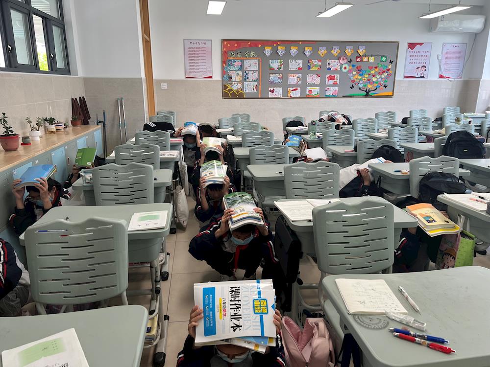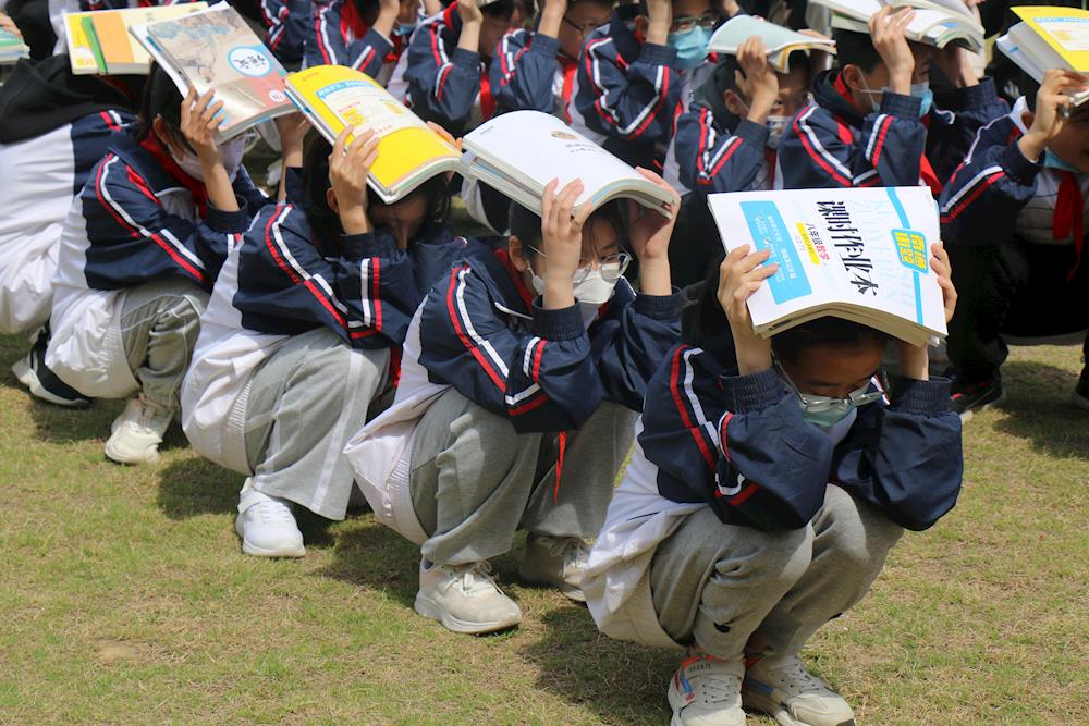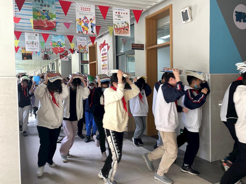 随着第一声警报和石雪珍校长的广播下,学生抱头躲避,就近蹲起在课桌、实验台尽最大努力保护好头部。当第二声警报响起时,同学们自教室迅速、有秩序的按照逃生路线撤离到空旷的操场上,我校师生用时2分2秒快速全部安全撤离。